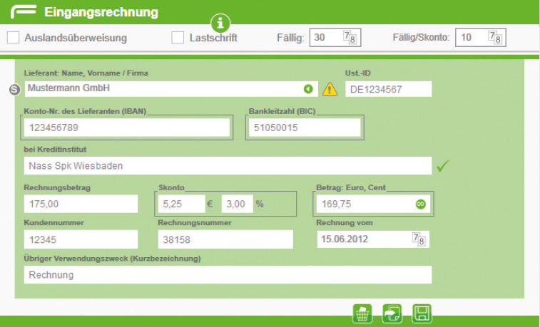 Nach dem Scannen der Belege erhalten Sie den ausgefüllten Überweisungsträger mit Hilfe der OCR-Technologie.