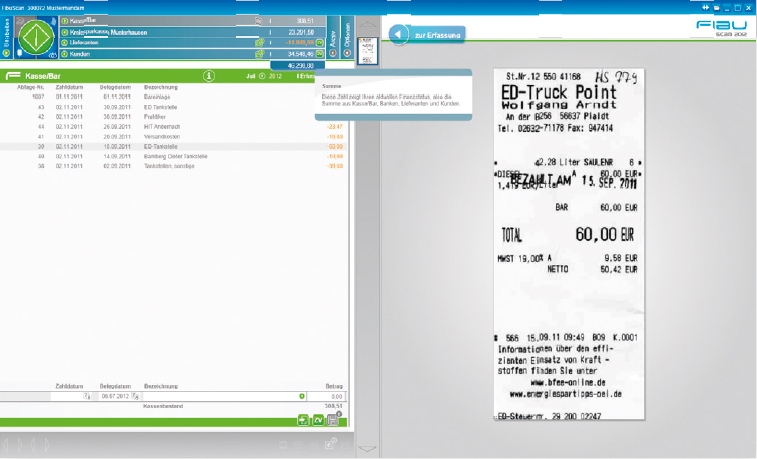Nach dem Scannen von Kassenbelegen wird automatisch das Kassenbuch mit Hilfe der OCR-Technologie erstellt.